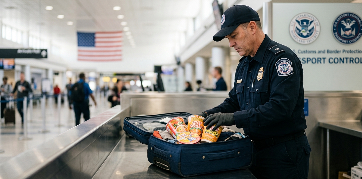 結論からいうと、アメリカへのカップ麺持ち込みは「成分によって大きくリスクが変わる」のが実態です。CBP(米国税関・国境警備局)は、肉エキスを含むスープの素・ブイヨン類をほとんどの場合持ち込み制限対象と定めており、申告なしで発覚すると高額の罰金リスクがあります。この記事では、CBPとUSDA(農務省)の仕組みから、具体的な商品別の持ち込みリスク、申告方法まで整理します。
