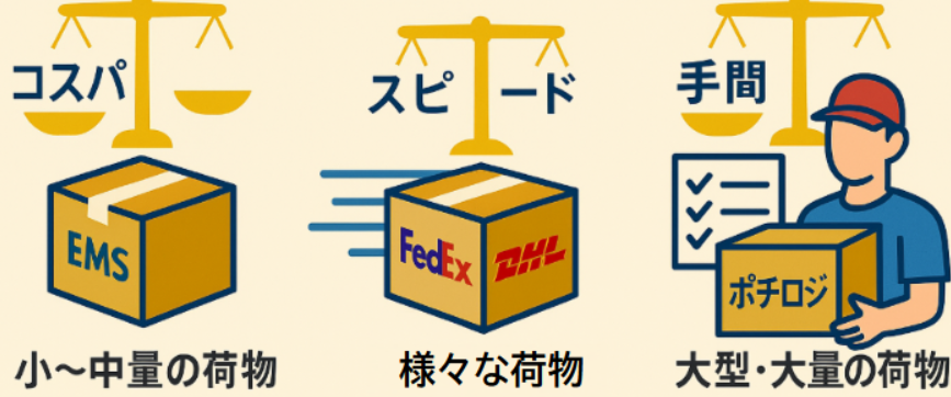 - 5kg以下の軽量なら、料金と手軽さでEMSが第一候補になりやすい