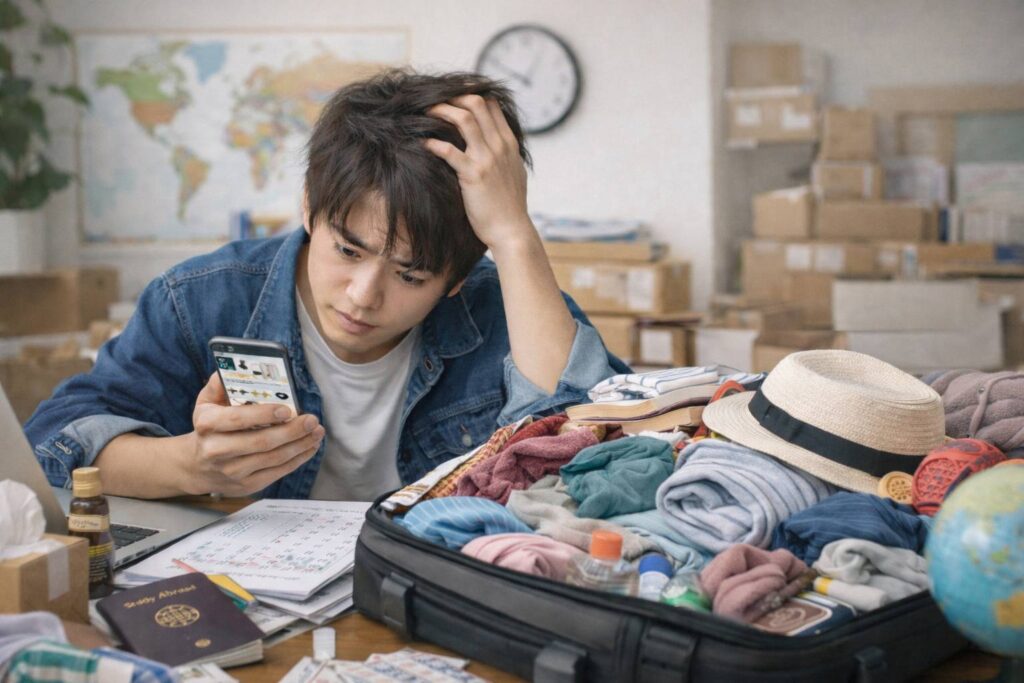 間に合わなくなる人の共通点は、能力の問題ではなく進め方の問題が大半です。たとえば、チェックリストを作ったのに「どれが先か」が決まっていない。あるいは、SNSや口コミで持ち物を増やしすぎて、パッキングだけで時間が溶ける。さらに、ビザ関連の書類(残高証明や入学許可など)を集める工程を甘く見て、後半で詰まるケースも多いです。