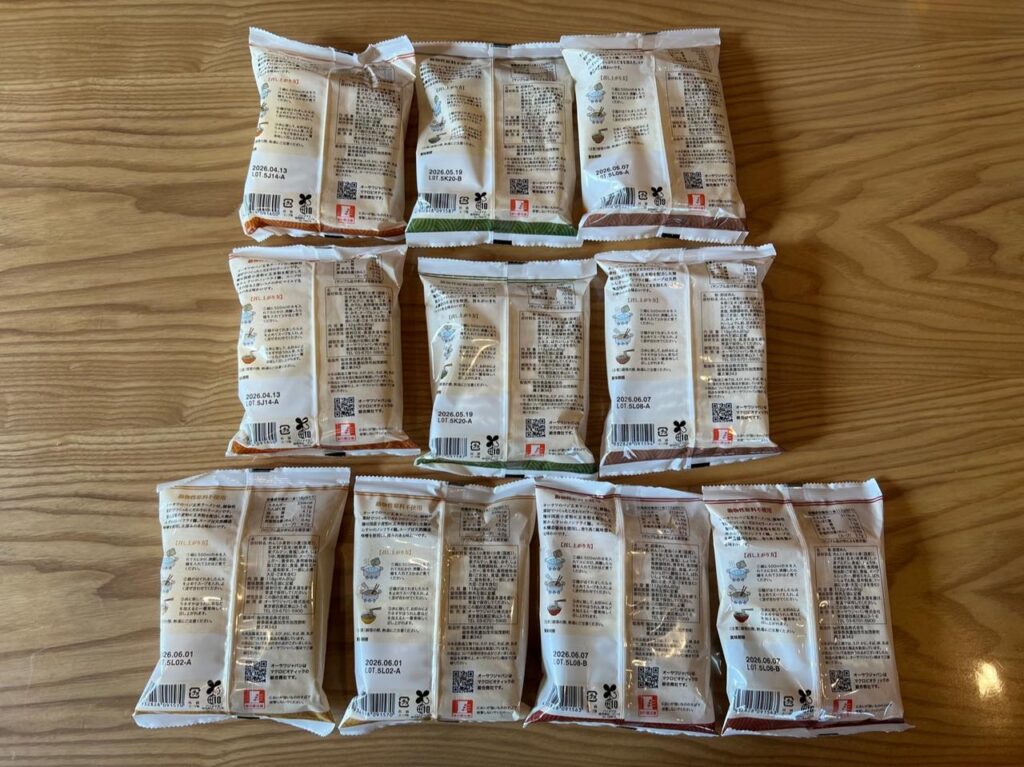 Amazonや楽天では、これらの商品を全部揃えようとすると、ストアが違うため別々に送料が発生して面倒ですし、ビーガンラーメンのアソートがあっても5種25食分程度が限界です。でもこのアソートなら、一度に18種類もの味が楽しめるんですよ。