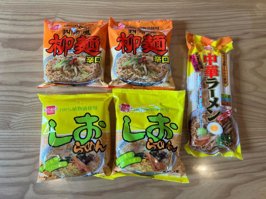 国産小麦100%使用、ノンフライ麺、化学調味料不使用の商品が多く、カロリーも1食あたり200〜300kcal程度と控えめ。留学中のお子さんや海外赴任中のご家族の健康を気遣いながら、日本の味を届けられるのが最大の魅力かなと思います。