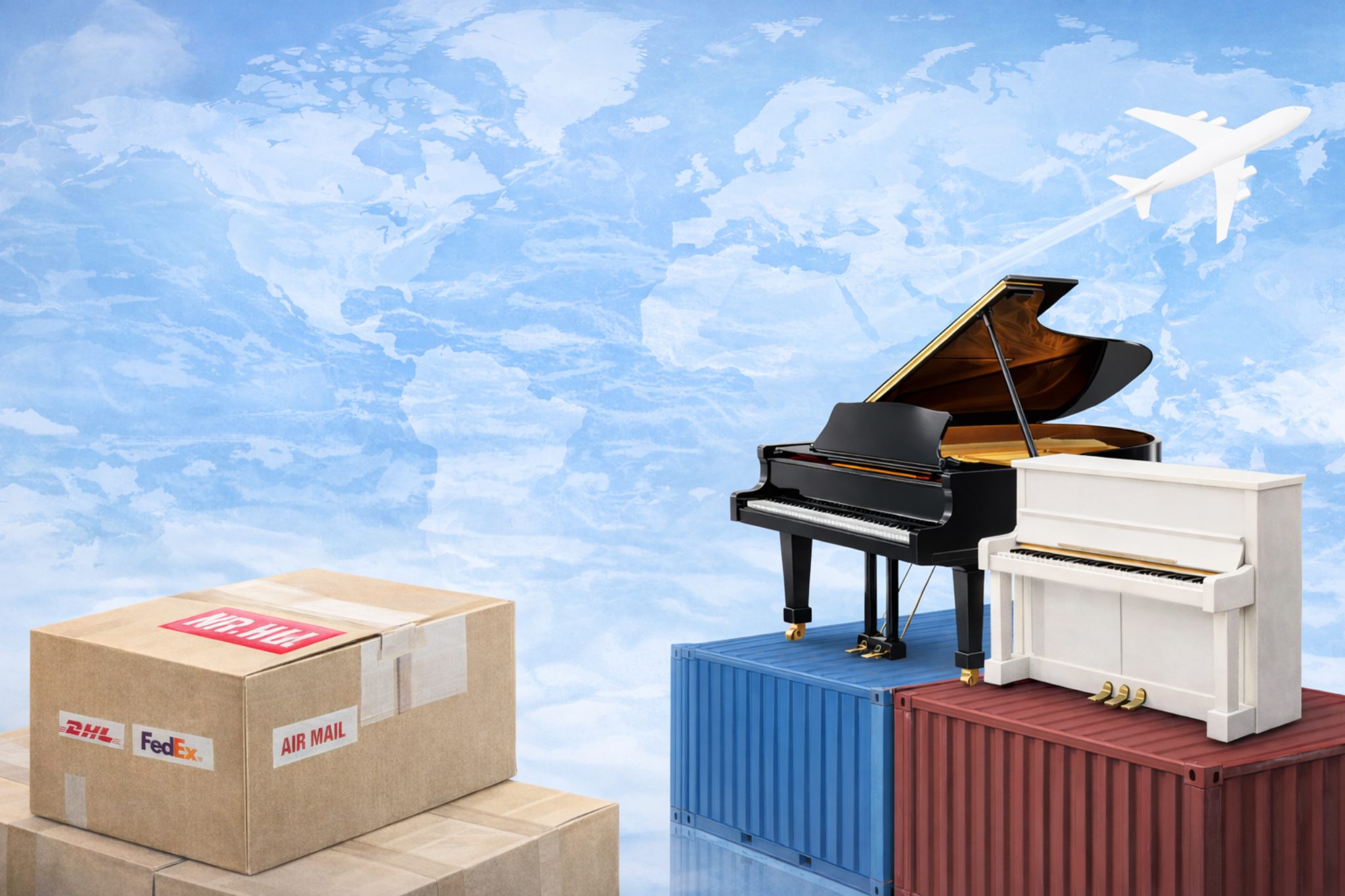 ただし、重量制限やサイズ制限があり、大型のアップライトやグランドピアノは送れません。また、精密機器としての扱いになるため、保険加入は必須です。EMSの場合、重量30kgまでしか対応していないため、それを超える電子ピアノは送れません。DHLやFedExは重量制限がゆるいですが、重量超過料金や規定外貨物手数料が別途かかることがあります。