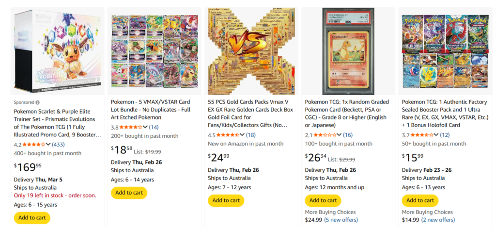 Amazon(米国版)でポケモンカードを見る