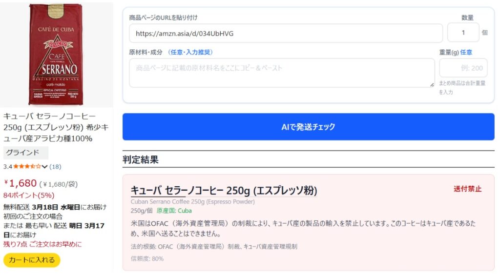 - 商品URLを貼るだけで禁制品かどうかを判定