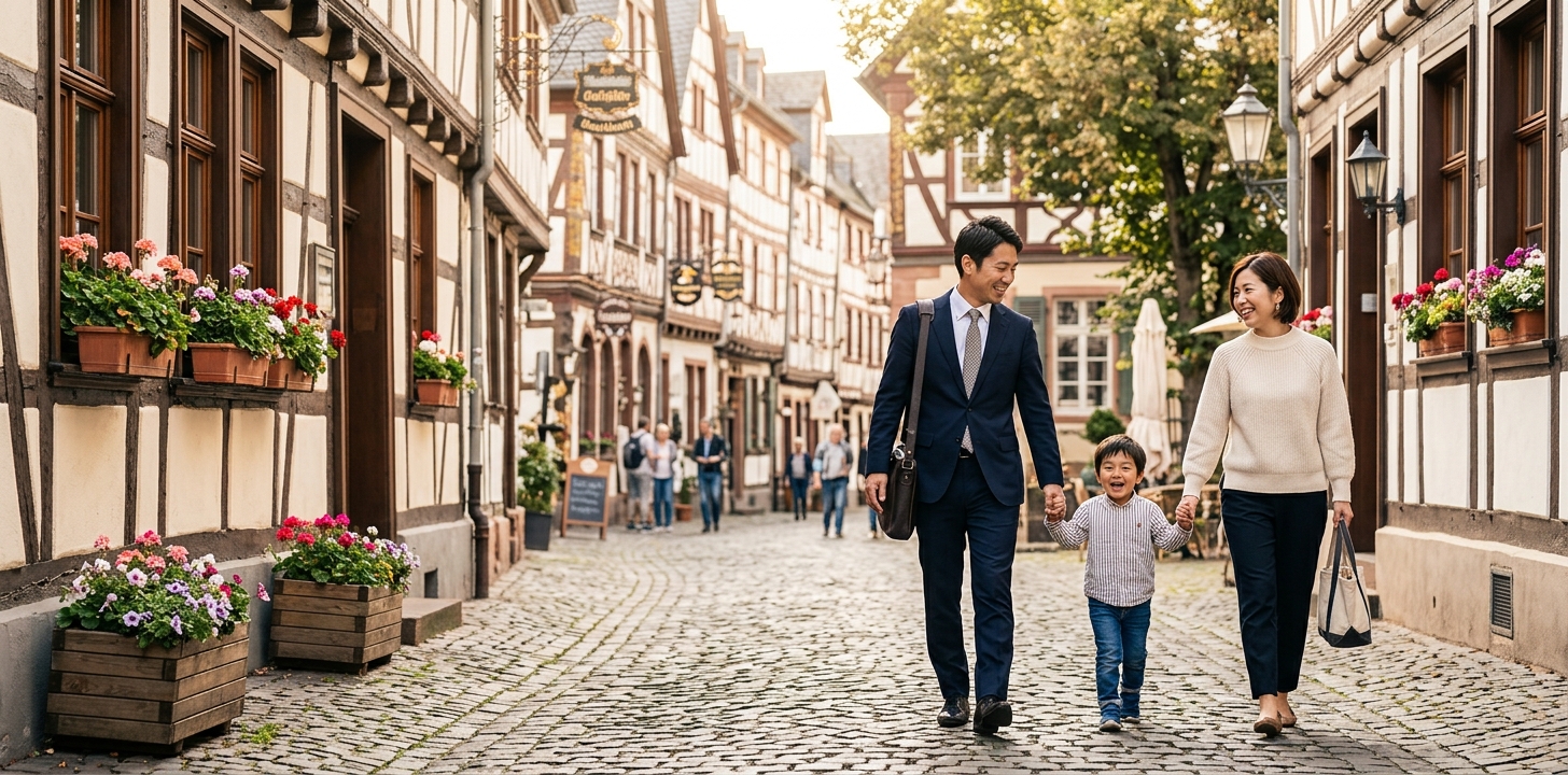 ドイツで最も日本人が多い都市がデュッセルドルフです。日本人は約8,000〜10,000人が在住し、インマーマン通り周辺には日本食レストラン・日系スーパー・日本語対応の病院が集中しています。