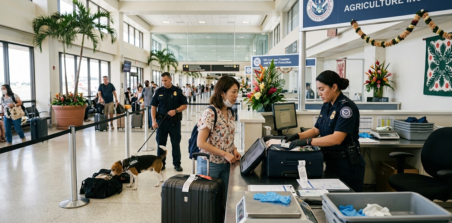 HDAP(Hawaii Department of Agriculture:ハワイ州農業省)は、ハワイの生態系を守るためにアメリカ本土からの到着者も含む全旅行者に対して農業検査を実施します。ハワイは外来生物の侵入に非常に敏感な島嶼環境のため、本土よりも規制が厳しい部分があります。